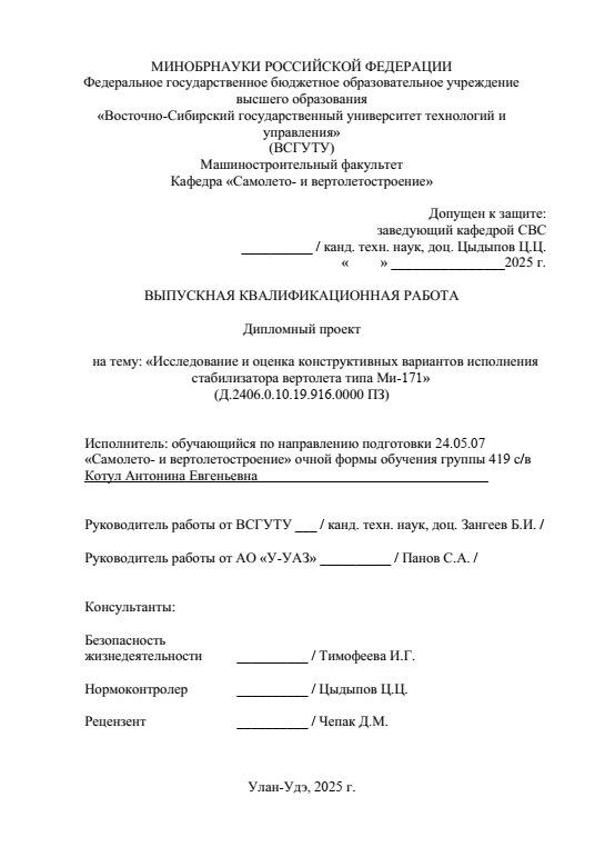 Вертолеты являются уникальными воздушными судами, способными выполнять вертикальный взлет и посадку, а также зависать в воздухе. Эти характеристики делают их незаменимыми для выполнения различных задач, включая транспортировку, поисково-спасательные операции и военные миссии. Однако вертолеты подвержены внешним возмущениям, таким как турбулентность, которые могут повлиять на их устойчивость и управляемость. Для обеспечения устойчивости и управляемости вертолета используют стабилизатор.