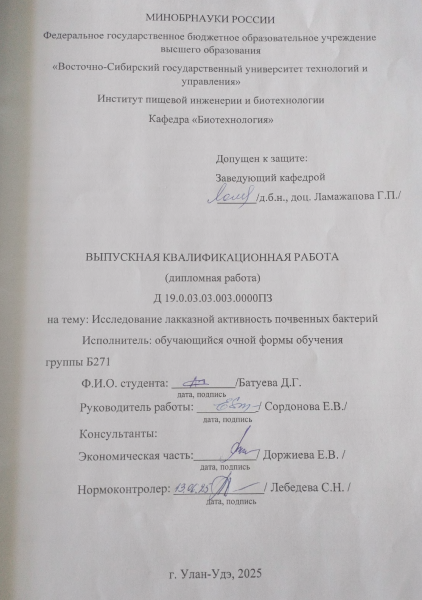 Исследование лакказной активности почвенных бактерий : ВКР бакалавра : направление подготовки 19.03.01 "Биотехнология"