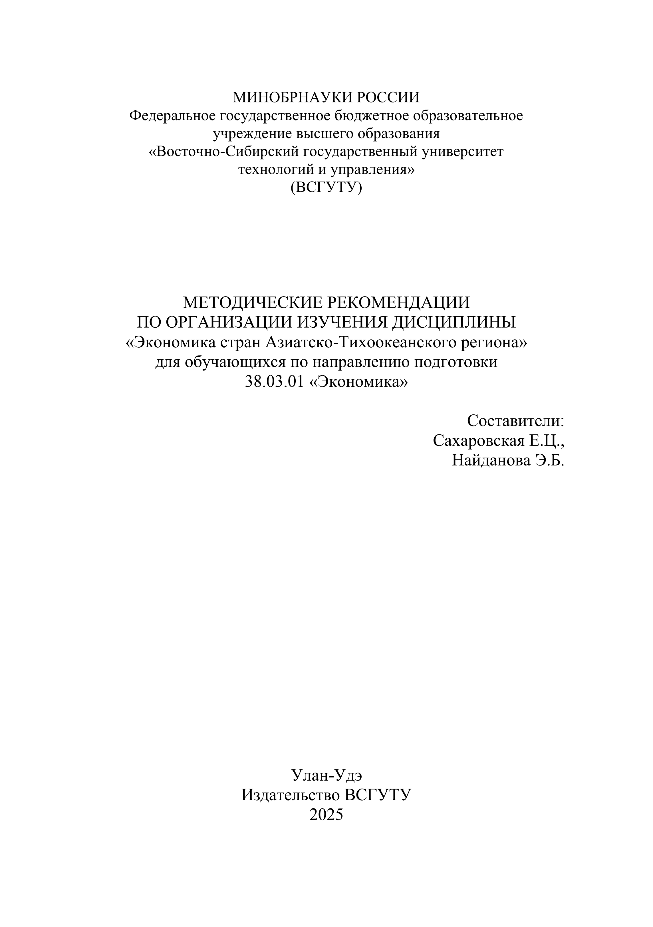 Здесь сформулированы основные требования к изучению дисциплины «Экономика стран Азиатско-Тихоокеанского региона».