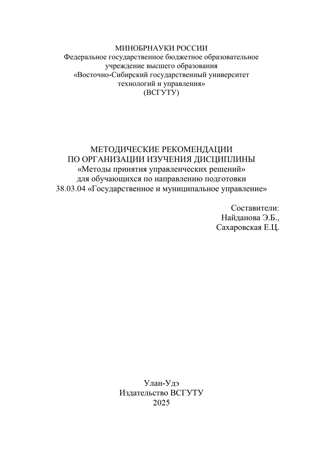 Здесь сформулированы основные требования к изучению дисциплины «Методы принятия управленческих решений».