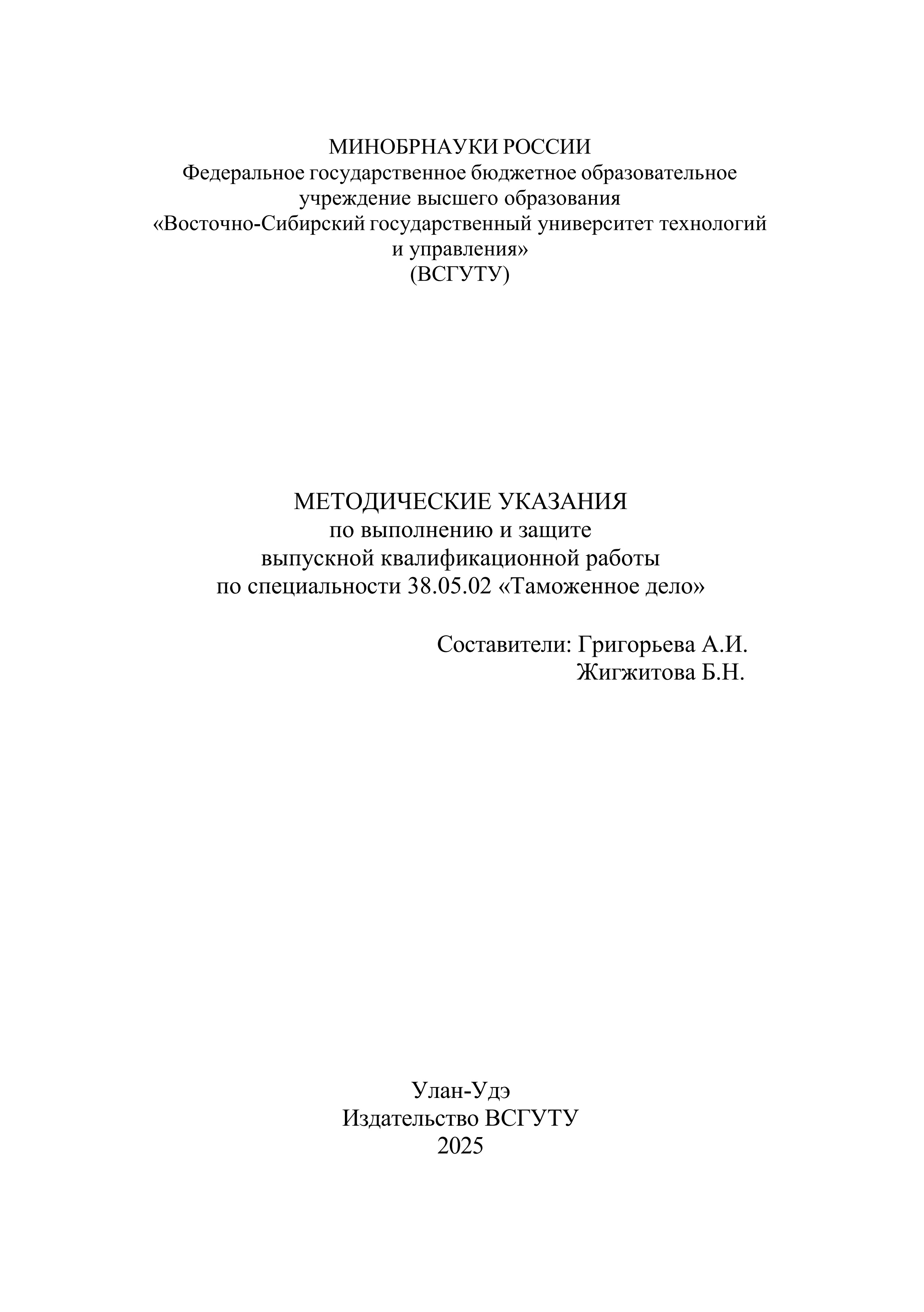 Методические указания по выполнению и защите выпускной квалификационной работы предназначены для студентов (обучающихся) специальности 38.05.02 «Таможенное дело» всех форм обучения.
