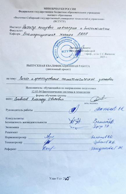 Модернизация стоматологической установки : ВКР бакалавра : направление подготовки 12.03.04 "Биотехнические системы и технологии"