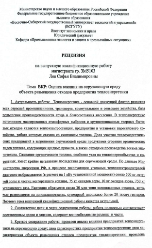 Оценка влияния на окружающую среду объекта размещения отходов предприятия теплоэнергетики : ВКР магистра : направление подготовки 20.04.01 "Техносферная безопасность"