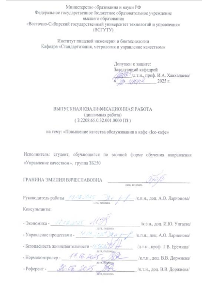 Повышение качества обслуживания в "Ice-кафе" : ВКР бакалавра : направление подготовки 27.03.02 "Управление качеством"