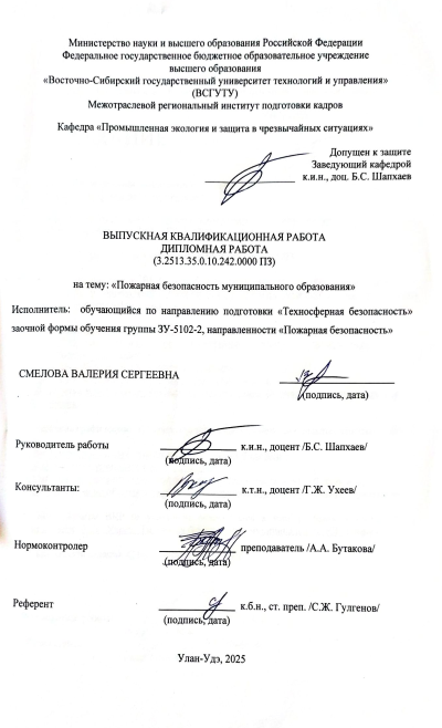 Пожарная безопасность муниципального образования : ВКР бакалавра : направление подготовки 20.03.01 "Техносферная безопасность"