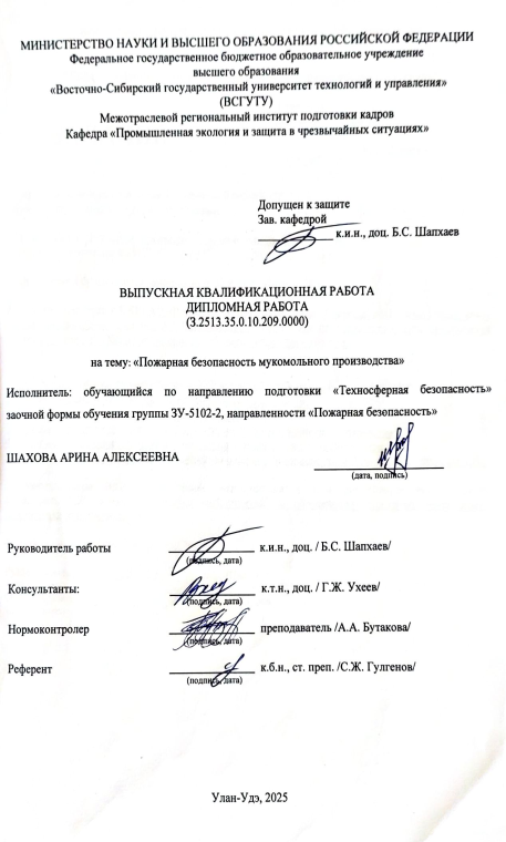 Пожарная безопасность предприятия мукомольного производства : ВКР бакалавра : направление подготовки 20.03.01 "Техносферная безопасность"
