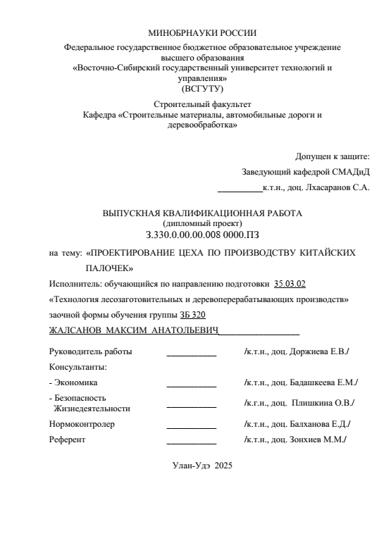 В настоящей выпускной квалификационной работе (дипломном проекте) рассмотрено проектирование производства товаров массового потребления, в частности производство одноразовых деревянных палочек для еды. Палочки для еды традиционный столовый прибор в Восточной Азии. К четырем странам, где преимущественно используют палочки, относится Китай, Япония, Корея и Вьетнам. Согласно сведениям «Лесной промышленности» на 2019 г. Китай ежегодно потребляет 45 миллиардов пар одноразовых палочек для еды в год, Япония – 25 миллиардов пар одноразовых палочек. Эти обстоятельства, при исследовании этого рынка, позволили предусмотреть возможность организации производства одноразовых палочек для еды в Республике Бурятия для дальнейшего экспорта в страны Восточной Азии.
