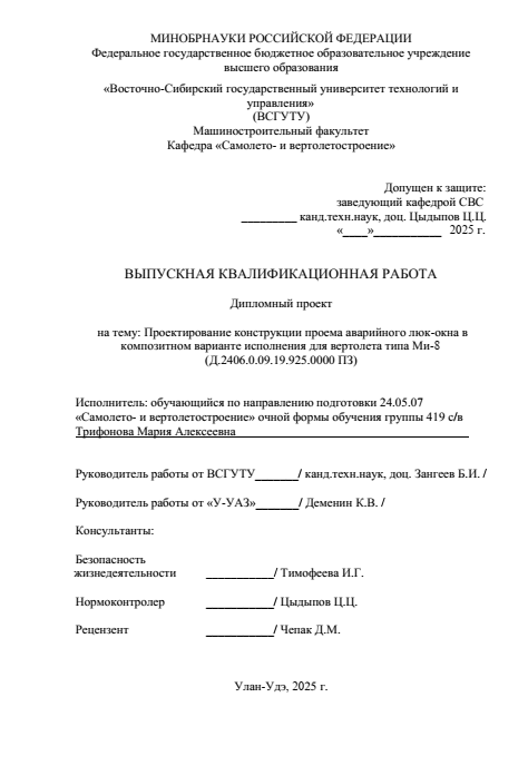Проектирование конструкции проема аварийного люк - окна в композитивном варианте исполнения для вертолета типа Ми-8 : ВКР специалиста : специальность 24.05.07 "Самолето - и вертолетостроение"