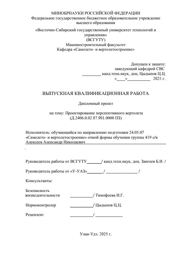 Проектная задача заключается в создании конструкции нового типа вертолета, включая все его ключевые элементы. На первом этапе работы над проектом была разработана концепция внешнего вида вертолета. Для этого был осуществлен анализ основных тактико-технических требований (ТТТ), предъявляемых к вертолету, летно-технических характеристик (ЛТХ), конструктивных схем, основных параметров, общего устройства вертолета и его систем, силовой установкой (СУ), правил выполнения чертежей общего вида вертолета и общего устройства его агрегатов.
