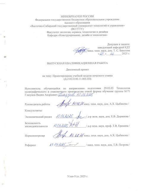 Проектирование учебной модели печатного станка : ВКР бакалавра : направление подготовки 29.03.03 "Технология полиграфического и упаковочного производства"