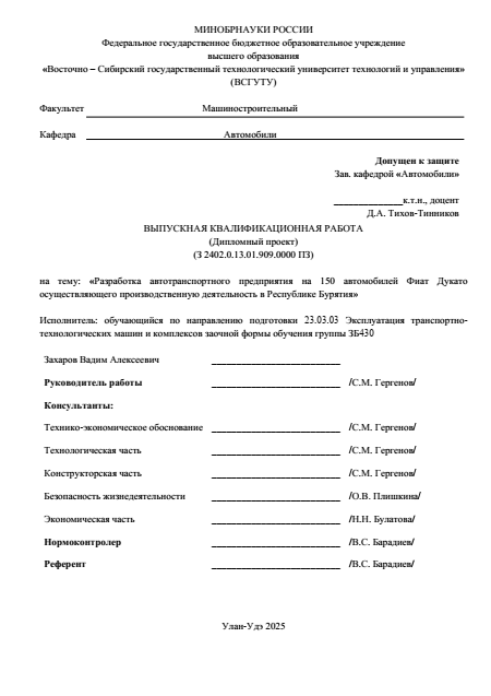 Основная цель моего дипломного проекта — это разработка автотранспортного предприятия на 150 автомобилей Фиат Дукато осуществляющего производственную деятельность в Республике Бурятия, а также модернизация поворотного механизма шинного тестера с помощью разработанного и спроектированного блока управления поворотным механизмом на базе микропроцессора ATmega328P «Arduino UNO» что позволит исключить человеческий фактор, погрешность при испытаниях. Благодаря программе, написанной с помощью приложения Arduino IDE для платы «ARDUINO UNO» можно автоматизировать процесс измерения и получить более качественные измерения.