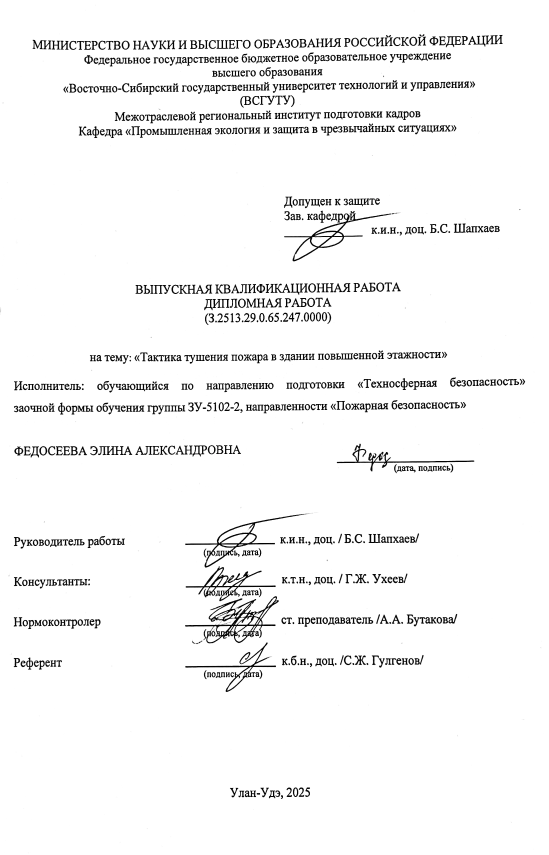 Тактика тушения пожара в здании повышенной этажности  : ВКР бакалавра : направление подготовки 20.03.01 "Техносферная безопасность"