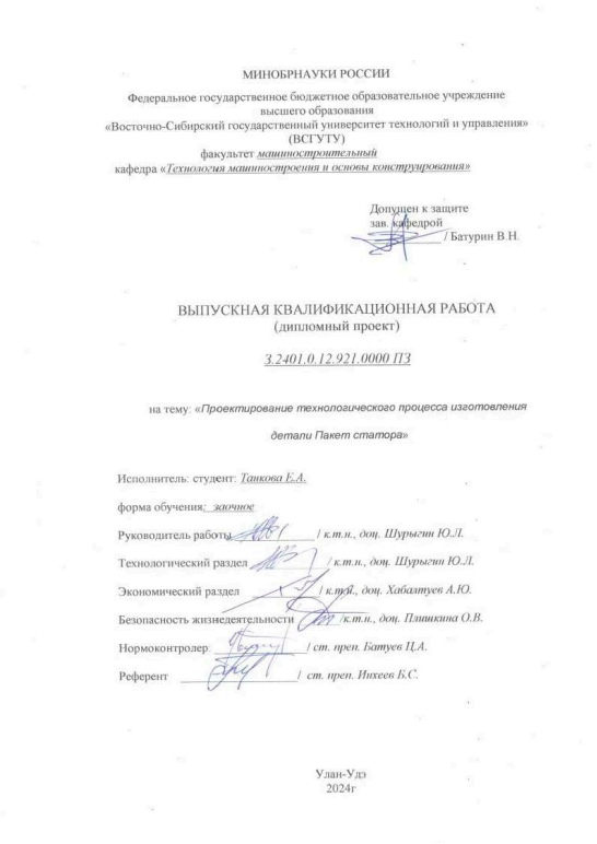 В представленном дипломном проекте разрабатывается технологический процесс механической обработки деталей «Пакет статора» и «Гильза» с использованием фрезерного обрабатывающего центра Wasino AD-12. При изготовлении детали возникают определенные проблемы. Так как заготовкой является отливка, могут возникать скрытые дефекты в виде раковин, трещин, которые выявляются в процессе механической обработки. Приходится учитывать то что обработать все конструктивные элементы и поверхности за минимальное количество установок на устаревшем оборудовании невозможно. Дипломный проект представляет собой расчетно-графическую работу, в которой обобщаются все технологические познания и навыки, приобретенные за время обучения. Дипломный проект является большой самостоятельной работой будущего технолога, направленной на решение конкретных задач B области совершенствования технологии, организации производства и улучшение технико-экономических показателей работы участка. Наряду с этим дипломное проектирование закрепляет умение студента пользоваться справочной литературой, ГОСТами, таблицами, номограммами, нормами и расценками умело, сочетая справочные данные с теоретическими знаниями, полученными в процессе изучения курса.