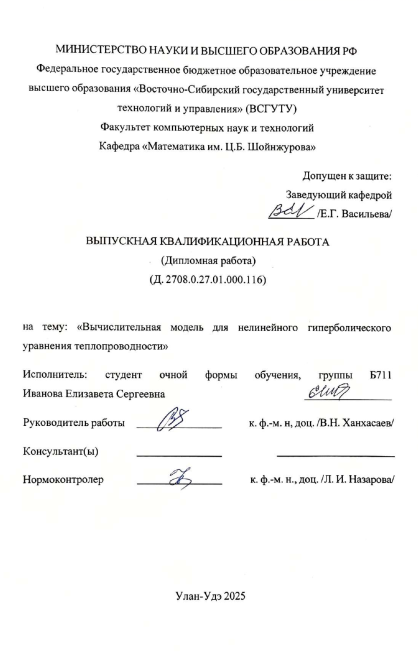 Дифференциальные уравнения, как и остальные разделы математики, имеет свои приложения в различных сферах естествознания, в частности – математическая физика. Дифференциальные уравнения второго порядка в частных производных подразделяют на три типа: параболический, гиперболический и эллиптический. Изучение каждого из них начинается с рассмотрения задач, приводящих к одному из типов. Для корректного решения необходимо так составить математическую модель, отображающую важные физические свойства, чтобы она была адекватной и при этом достаточно простой. Вычисление температуры в заданный момент времени с помощью уравнения теплопроводности, что представляет собой дифференциальное уравнение второго порядка в частных производных, является одной из областей применения дифференциальных уравнений в частных производных. Для решения таких задач существуют как аналитические способы, так и численные методы.